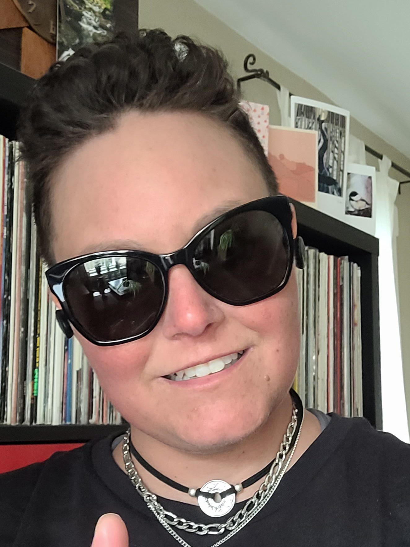 In this spirit of appreciation, I’ll stop with the sappy, self-helpy vibes and say that the best thing these days is my hair. Although there is chemo-induced thinning, there is also chemo-induced curls. After getting over the initial confusion of coping with this newfound mess, I found a style that I adore. I honestly think that this is the first time in my life that I’m genuinely pleased with how my hair looks. It’s a funny fluff on the top of my head, which is perfect for my face shape, looks the perfect amount of androgynous, actually requires very minimal styling, and the curl shampoo and conditioner moisturizes my scalp so no more dry skin flakes! It’s a bit weird to be overjoyed with a hairstyle that was caused by cancer treatment, but there you have it. Thanks chemo!